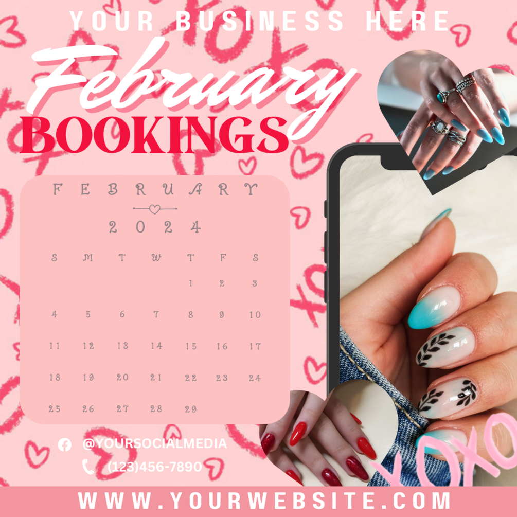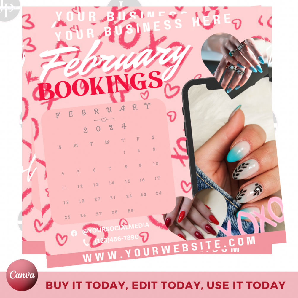 DIY Editable Pink February Booking Flyer, Valentine's Booking Flyer, Book Now Flyer, Flyer Template, Lash Hair Nails Make-up Flyer