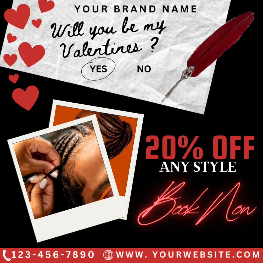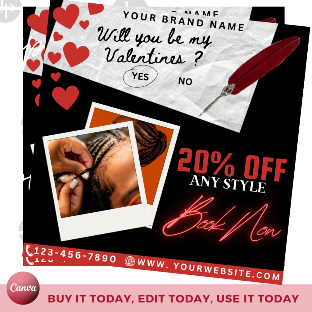 February Booking Flyer, Valentines Day Hair Flyer, Valentines Day Flyer, Hair Flyer, Lash Flyer, Nail flyer, Hair Booking Flyer, Braids Locs$1.99$1.99https://schema.org/InStockusdJaeNiqueBrandingLabJaeNiqueBrandingLabAdd to cartSize1.92 MBLength1 pageAdd to wishlist New wishlistShareShare on XShare on Facebook Copy linkCopy product URL